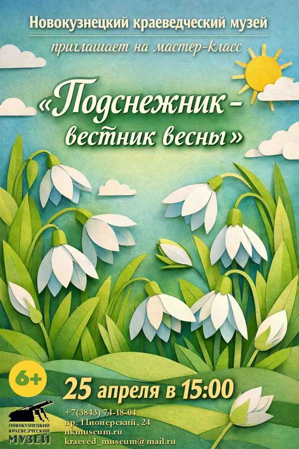 25 апреля (суббота) в 15:00 ждём вас на мастер-классе в Новокузнецком краеведческом музее, где вы сможете погрузиться в мир весеннего творчества, превратив обычный лист бумаги в трогательный символ пробуждения природы — подснежник.
