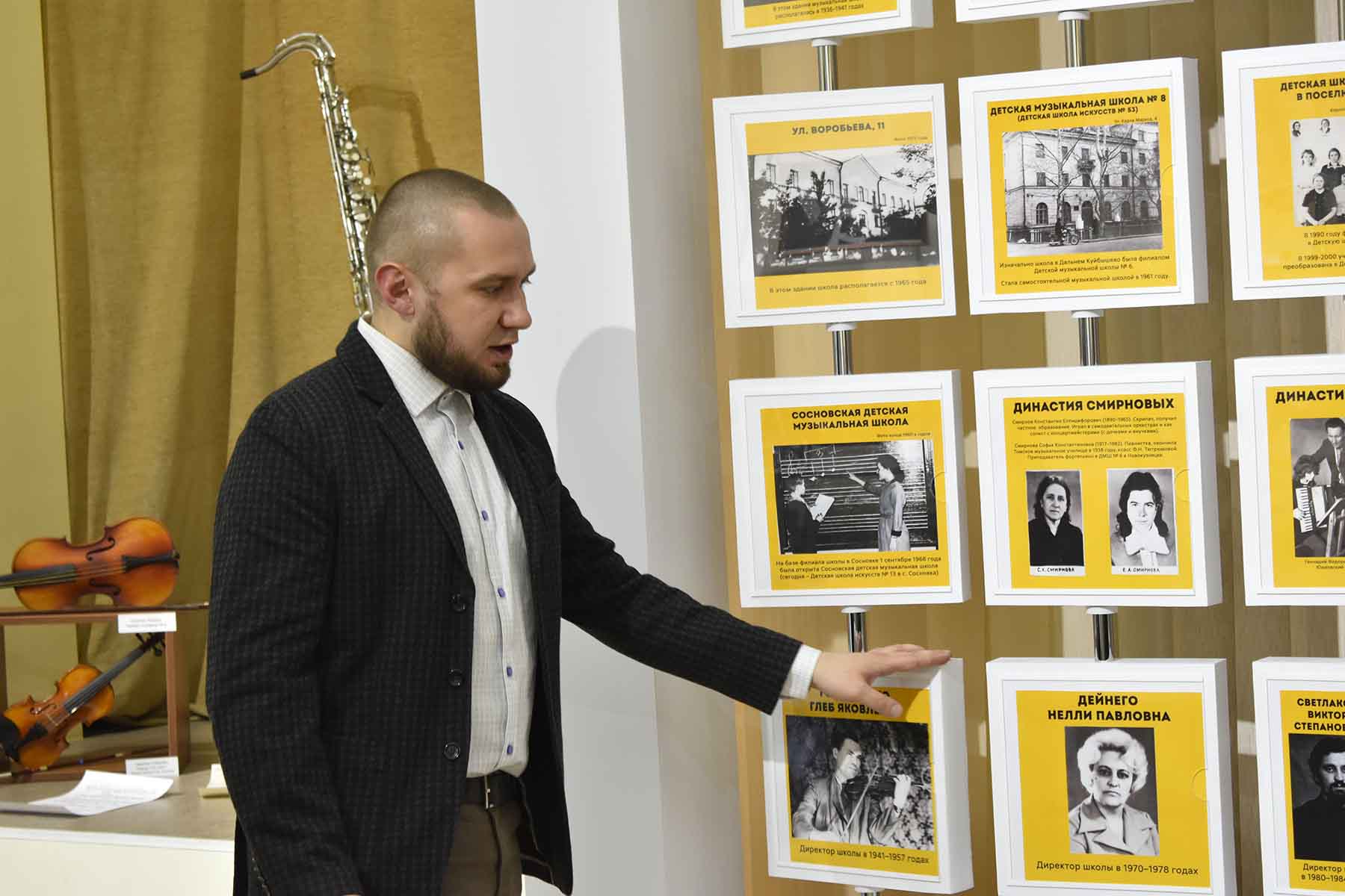На выставке представлены исторические документы, награды педагогов, музыкальные инструменты, а также уникальные кадры фото- и кинохроники, рассказывающие о становлении и развитии первой музыкальной школы Новокузнецка.